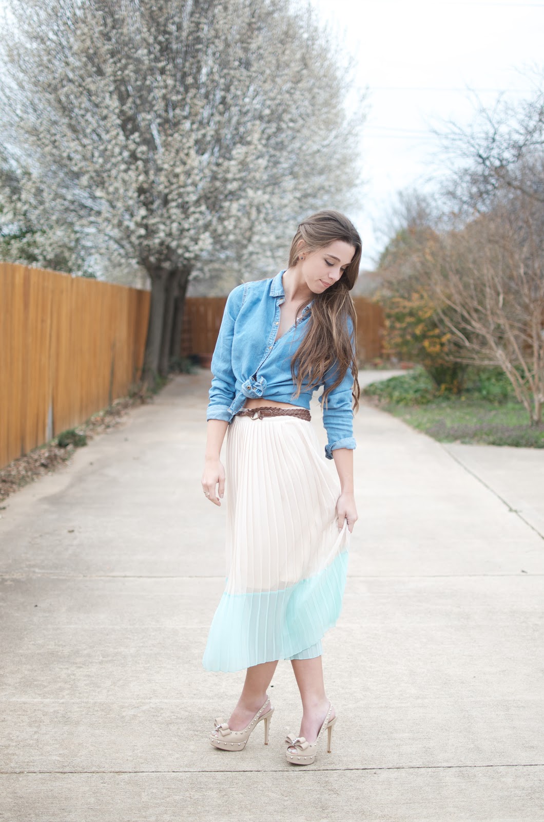 I paired my tea length (midi) spring skirt from Forever 21